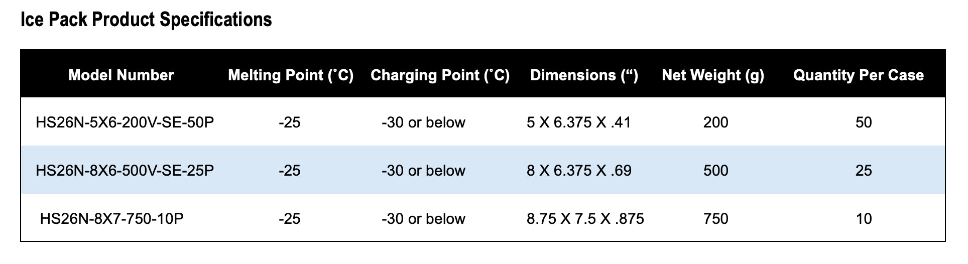 savENRG® Ice Packs are made with non-toxic, inorganic, and non-flammable Phase Change Material PCM-HS26N. These Ice Packs are a safe alternative to dry ice and provide reliable temperature control in the -26°C to -20°C (-15°F to -4°F) range to keep biological, diagnostic, and clinical trial specimens frozen during transportation.